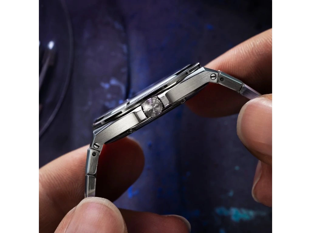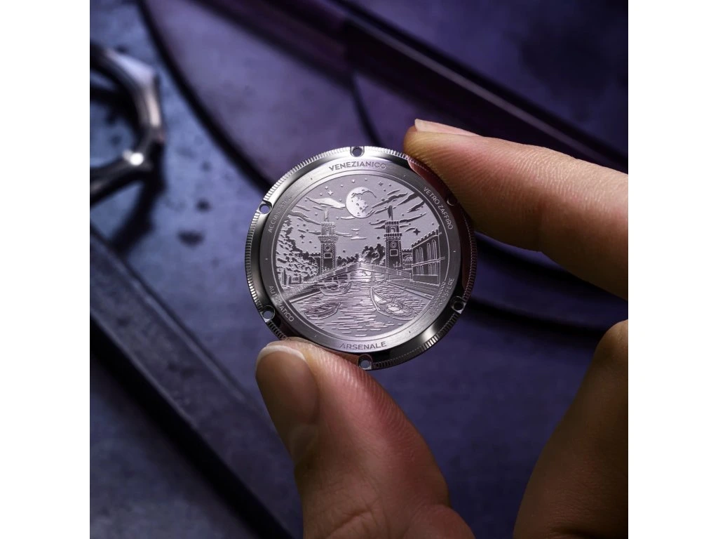 Dizajn týchto hodiniek je inšpirovaný benátskym arzenálom, starobylou lodenicou, ktorá po stáročia predstavovala srdce technologických inovácií v Serenissime. Arsenale kombinuje klasické povrchové úpravy s odvážnym, moderným dizajnom a vytvára dokonalú rovnováhu medzi tradíciou a inováciou. Jeho ultratenké puzdro s hrúbkou 9 mm a integrovaný náramok so saténovým povrchom s leštenými detailmi z neho robia elegantný a moderný model.