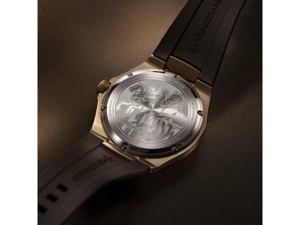 Arsenale Bronzo vynikajú nielen svojím dizajnom, ale aj schopnosťou vyvíjať sa spolu s vami, získavajúc jedinečnú osobnosť prirodzeným vývojom patiny. Dostupné sú s kaučukovým remienkom. Tieto hodinky stelesňujú vitalitu bronzu, ponúkajúc kombináciu štýlu a funkčnosti, ktorá bude určite vyhovovať každému, kto hľadá odolné a pútavé hodinky.