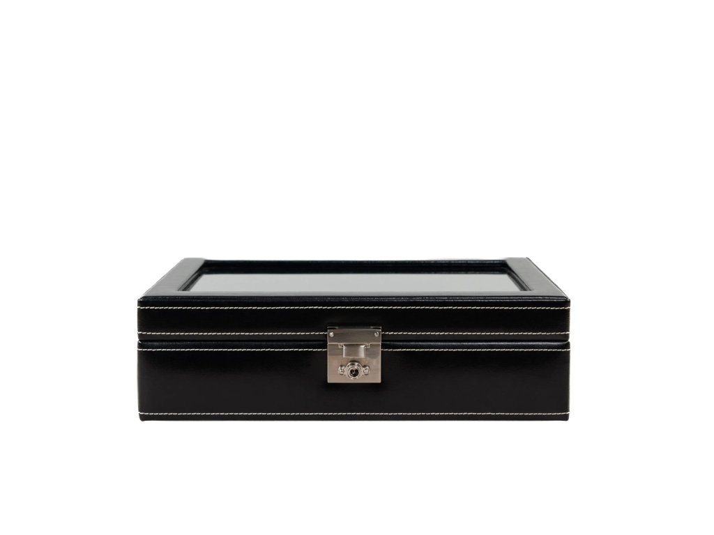 Kufrík na 10 hodiniek so sklom z kože